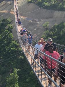 One of the exciting things that they decided to do during their vacation was to cross the Skybridge. And, if you’re not familiar with the Skybridge, it’s the longest pedestrian suspension bridge in North America. The span of the bridge is 680. And, when you’re walking at the midpoint, you’re suspended 140 feet. Both Angela and Courtney decided to walk across it. Oh, did we mention the glass floor panels? And also the swaying of the bridge in the wind? No worries, our tough women consider the Skybridge walk one of their vacation highlights.